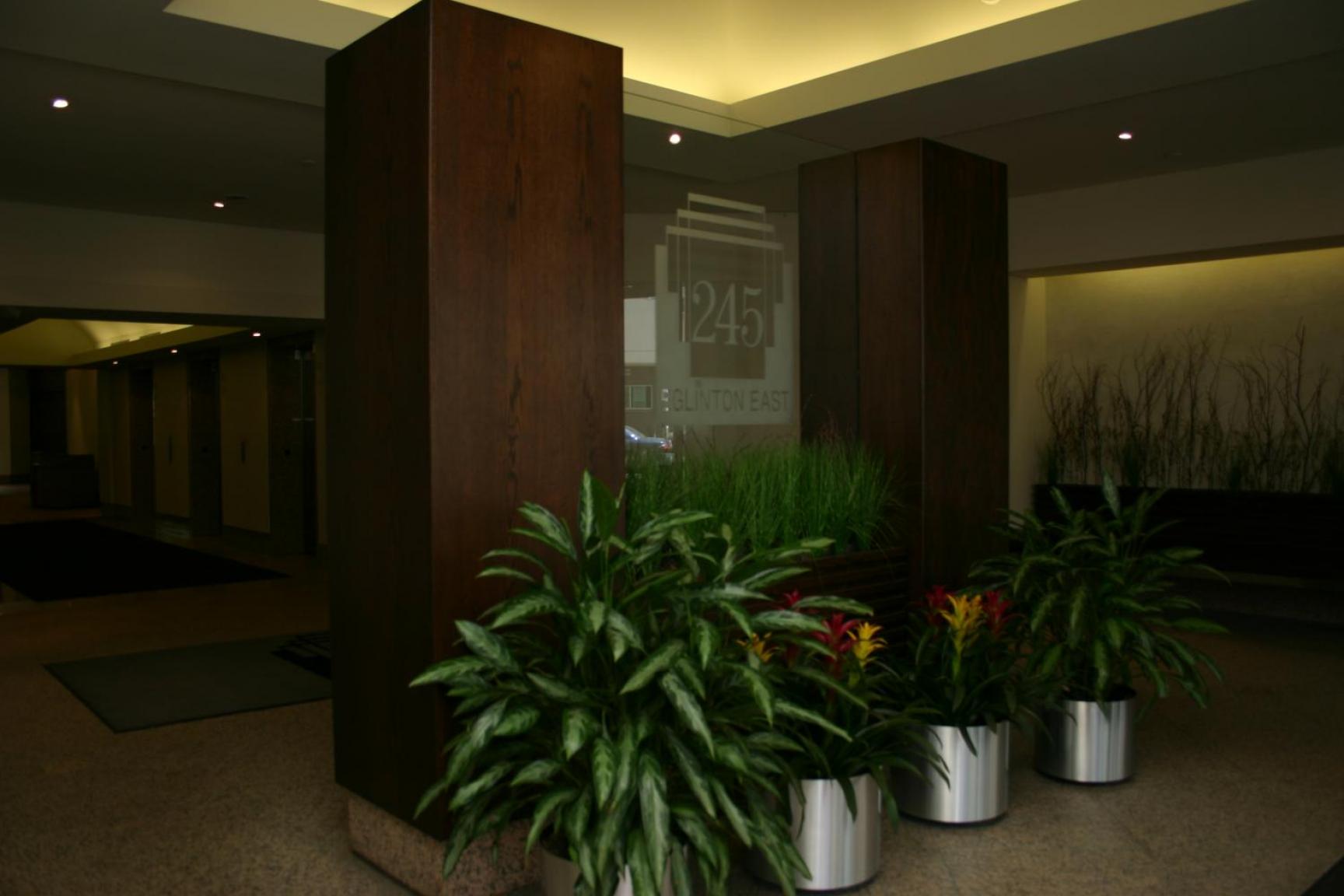 A beautifully landscaped interior courtyard provides an oasis of peace and tranquility from the surrounding City noise - a welcome respite for all tenants. During the summer, benches, chairs, tables and umbrellas are placed in this outside courtyard for the tenants' enjoyment. Inside and out, 245 Eglinton East makes a bold statement in quality, refinement and good taste.